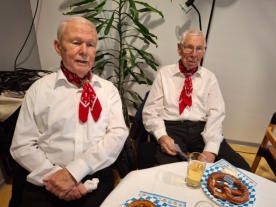 Hier singt Hans Kellerrshofen in seiner unnachahmlichen Weise den Hamborger Kedelklopper.Er wird von Hanne Steinhagen auf dem Akkordeon beglei- tet. Beide Chorbrüder sind leider in den Jahren 2019 bzw. 2020 verstorben.